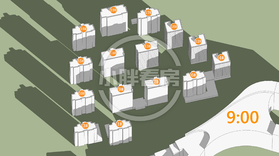 该户型所在的4幢、12幢、16幢,通过错位布局、扭转建筑角度,创新性的楼栋排布,实现了270度环绕式瞰江视野。(注:存在政府后期规划的可能,具体以实际情况为准)