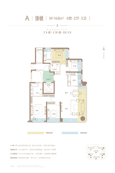 四居室智能户型,面积阔绰,功能齐全,是多代同堂、高端改善家庭的首选。该户型在智能科技应用上达到了行业领先水平,为业主打造了全方位、高品质的智能生活空间。入户玄关处安装了智能门锁、智能鞋柜和智能安防摄像头,智能门锁支持人脸识别、指纹识别、密码识别等多种解锁方式,智能鞋柜具有杀菌、除臭、烘干等功能,智能安防摄像头能够实时监测入户情况,保障家庭安全。客厅采用大横厅设计,面宽开阔,连接全景落地窗,客厅内安装了智能中央控制系统,能够实现对室内所有智能设备的集中控制,业主可以通过手机 APP 或语音控制灯光、空调、窗帘、家电、影音等设备,打造个性化的室内环境;客厅还可以配备智能机器人,能够实现扫地、拖地、擦窗、陪伴等多种功能,为业主的生活提供更多便利。四个卧室均为南向或南北通透设计,采光通风良好。主卧豪华套房设计,配备独立卫生间、衣帽间、书房和观景飘窗,主卧内安装了智能健康监测系统、智能睡眠系统、智能灯光系统、智能窗帘系统等多种智能设备,能够全方位保障业主的身体健康和居住舒适度;其他三个卧室也都安装了智能灯光、智能窗帘、智能门锁等设备,满足家人的居住需求;此外,还可以根据需求将其中一个卧室改造成智能健身房、智能影音室、智能棋牌室等功能空间,配备相应的智能设备,享受多样化的智能生活。厨房采用中西厨分离设计,安装了智能厨房设备和智能餐饮系统,能够实现中西餐的便捷烹饪和健康饮食管理;卫生间均采用干湿分离设计,安装了智能卫浴设备和智能健康监测设备,为家人的身体健康提供保障。