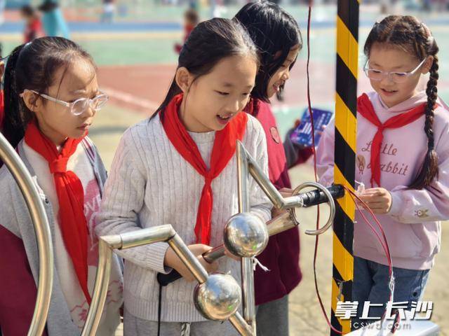 四年级的“鱼洗实验”中,手掌摩擦铜盆引发共振,水珠跃动、嗡鸣悠长;“冰壶大作战”“合力建塔”考验团队协作与策略思维,自制环保摩天轮尽显创意与环保理念。
