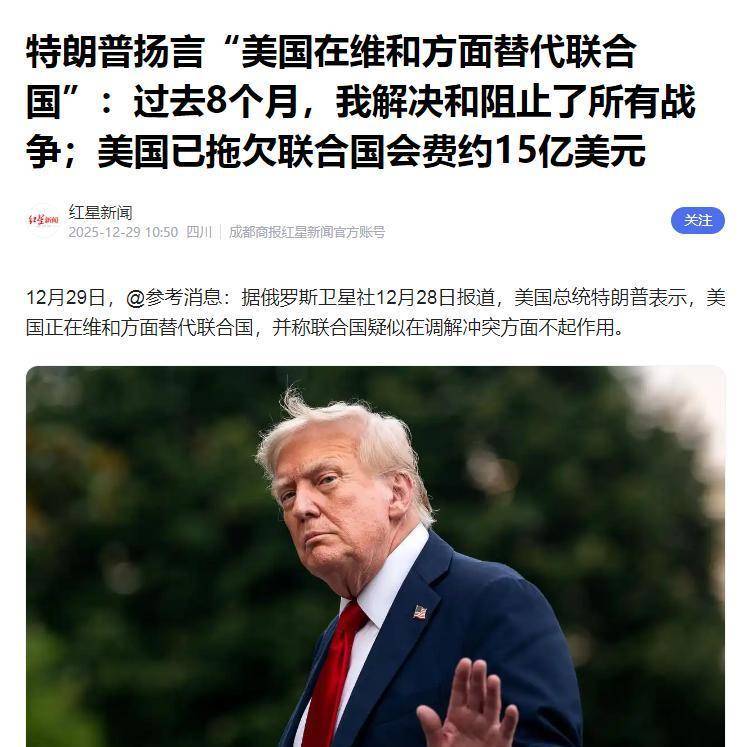 那个平日把联合国骂作“浪费钱的俱乐部”、欠着15亿美元会费不给、甚至公开说“联合国不如我家后院管用”的特朗普政府,居然乖乖投了赞成票?