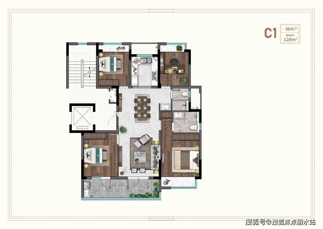 比如约128㎡的光幕洋房:经典四叶草户型,功能性直接拉爆,南向双联观景阳台,主卧套间设计,全屋布局满满温馨感。