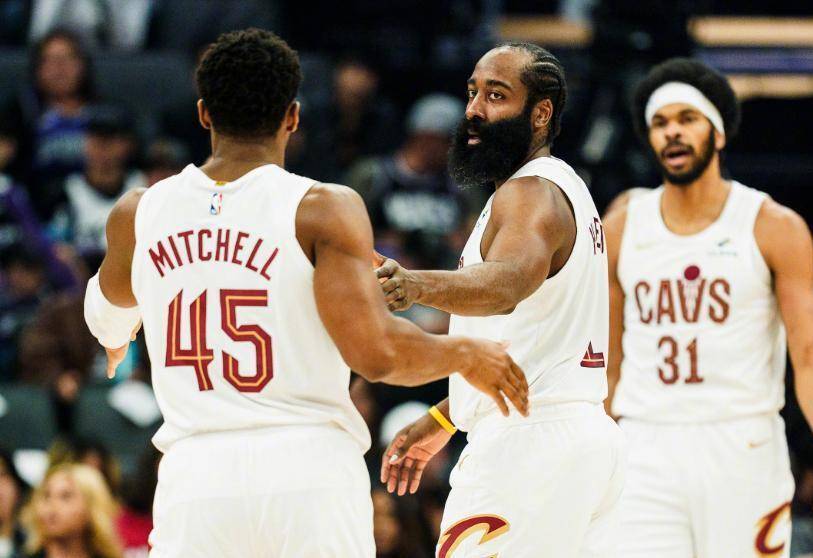 说回这场比赛,哈登带来的改变是立竿见影的。以前骑士的进攻,太依赖米切尔一个人抡了。对手都知道,只要死掐米切尔,骑士的进攻就哑火一半。上赛季季后赛,米切尔被包夹得三分命中率掉到24.5%,就是最好的证明。但现在不一样了,哈登往那一站,哪怕他前三节只得8分,国王队也不敢轻易去包夹米切尔,因为弱侧站着的可是一个历史级别的传球手和三分威胁点。