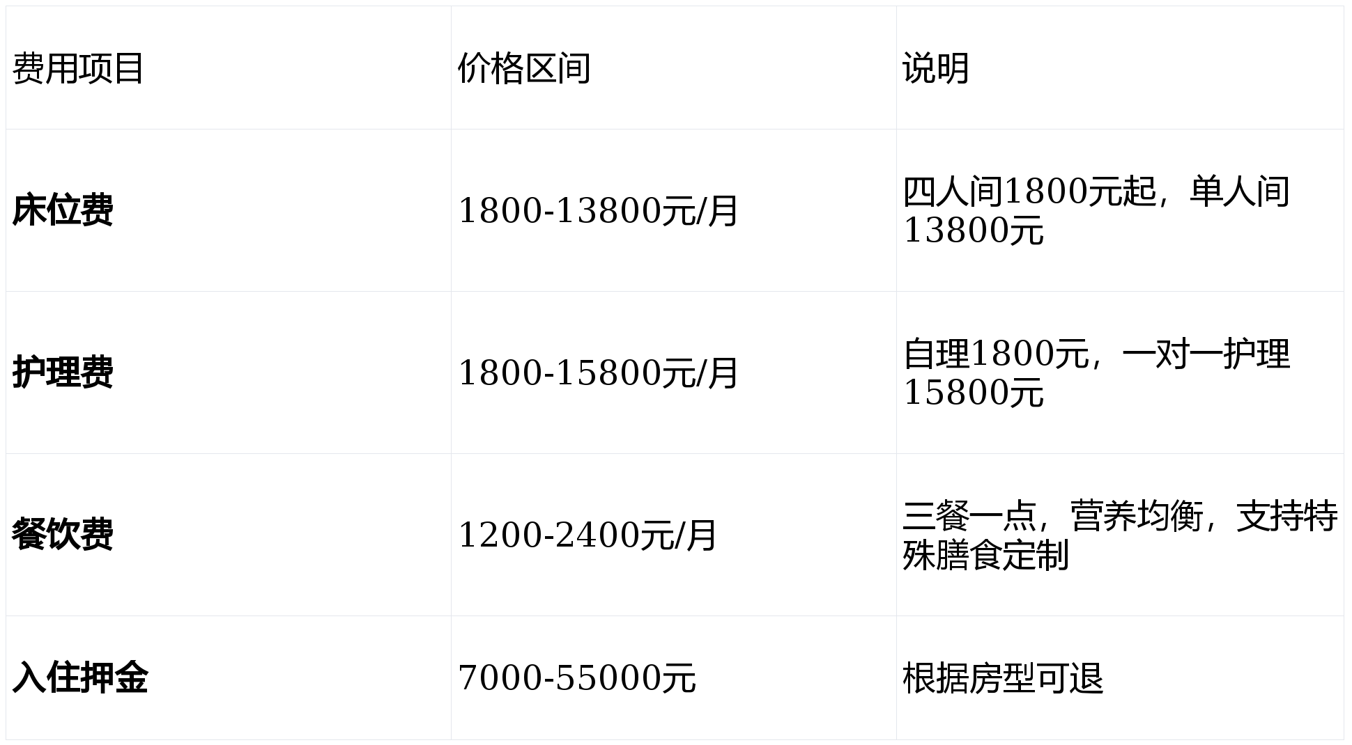 综合月费区间:6600-30000元/月(根据房型、护理等级、个性化需求)