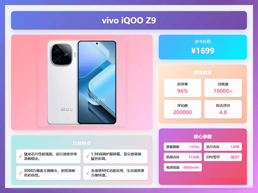 在预算1500元以内选手机时,别盲目追求参数,结合自身需求最重要!如果你是游戏党,那就得关注芯片性能,像努比亚和vivo那几款,处理器跑分都不错,玩一些主流游戏问题不大。当然,这个价位的手机别指望能流畅运行所有大型游戏,但日常玩玩王者荣耀、吃鸡等还是可以的。如果你是拍照爱好者,那就得看看摄像头像素和拍照功能,努比亚的1亿像素,魅族的影像系统,都能让你拍出清晰的照片,记录生活点滴。还有,电池容量也很重要,特别是重度用户,6000mAh大电池能让你告别电量焦虑,出门在外也不用担心。