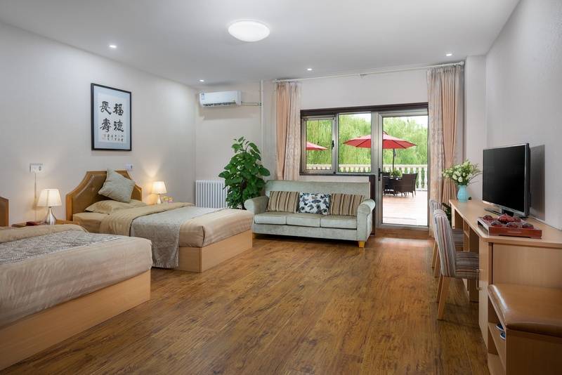 户型丰富,单人间、标准双人间、豪华套间可选,30-60平米宽敞空间,配套家具、智能家电、无障碍卫浴,24小时热水与应急呼叫系统,居住安全又舒适。户外有景观凉亭、健身道,步行可达康庄公园,日常休闲惬意;室内电影院、书画室、健身房、棋牌室等配套齐全,满足长者多样化文娱需求。内设社区卫生站,由北京一福寿山福海中医院提供开药服务,近邻大兴区人民医院、广安门中医院南区等三甲医院,医疗保障扎实。可接收异地老人,配备中高级职称医护、营养师、心理咨询师等专业人才,提供生活照料、医疗护理、心理疏导、居家养老等全方位服务,品质有口皆碑。